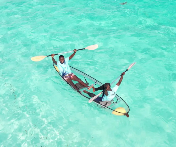 Enjoy a unique transparent kayak experience in Zanzibar with optional drone photography for stunning aerial